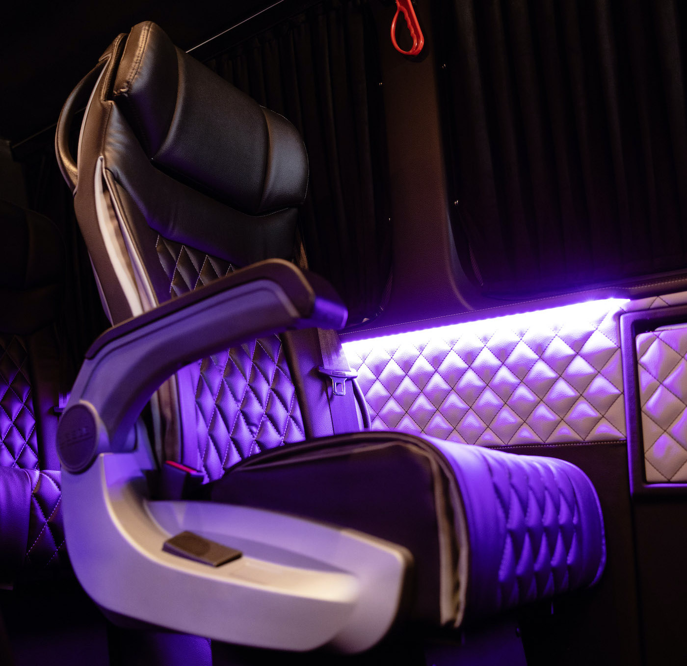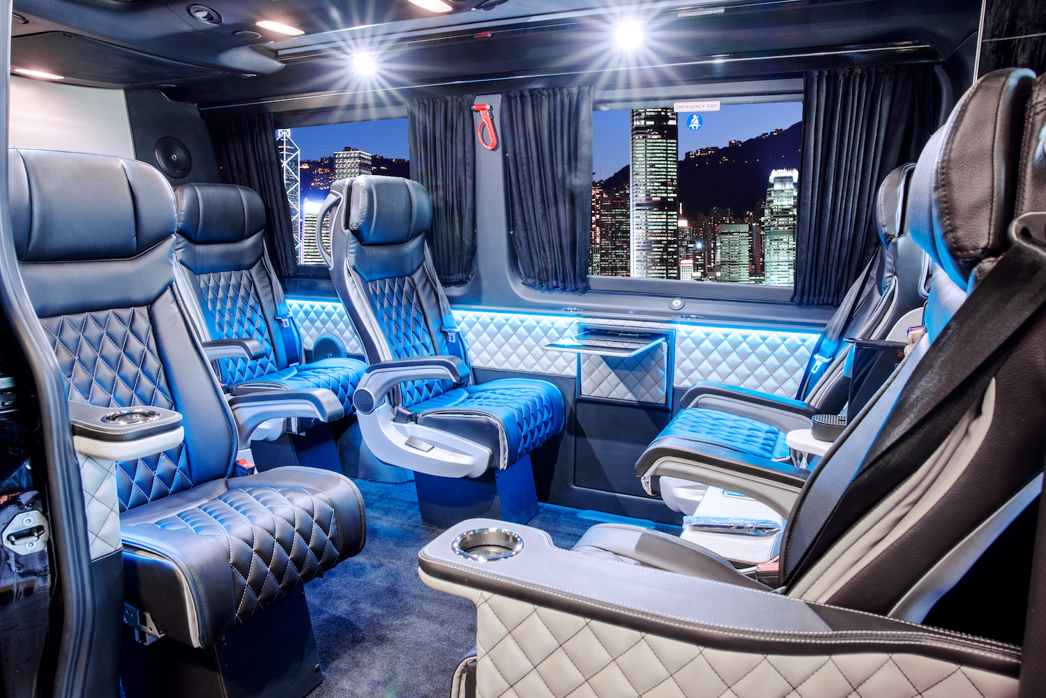 The Interior cabin of our Business Edition XL welcomes you with its sleek and modern design. Our craftsmen created a cabin that suits and fulfills the purpose of this vehicle. As of every transportation vehicle the focus needs to be on the seats and its comfort. With this model we used the most advanced and comfortable seats that can be reclined at the demanded level and have an optional footrest.